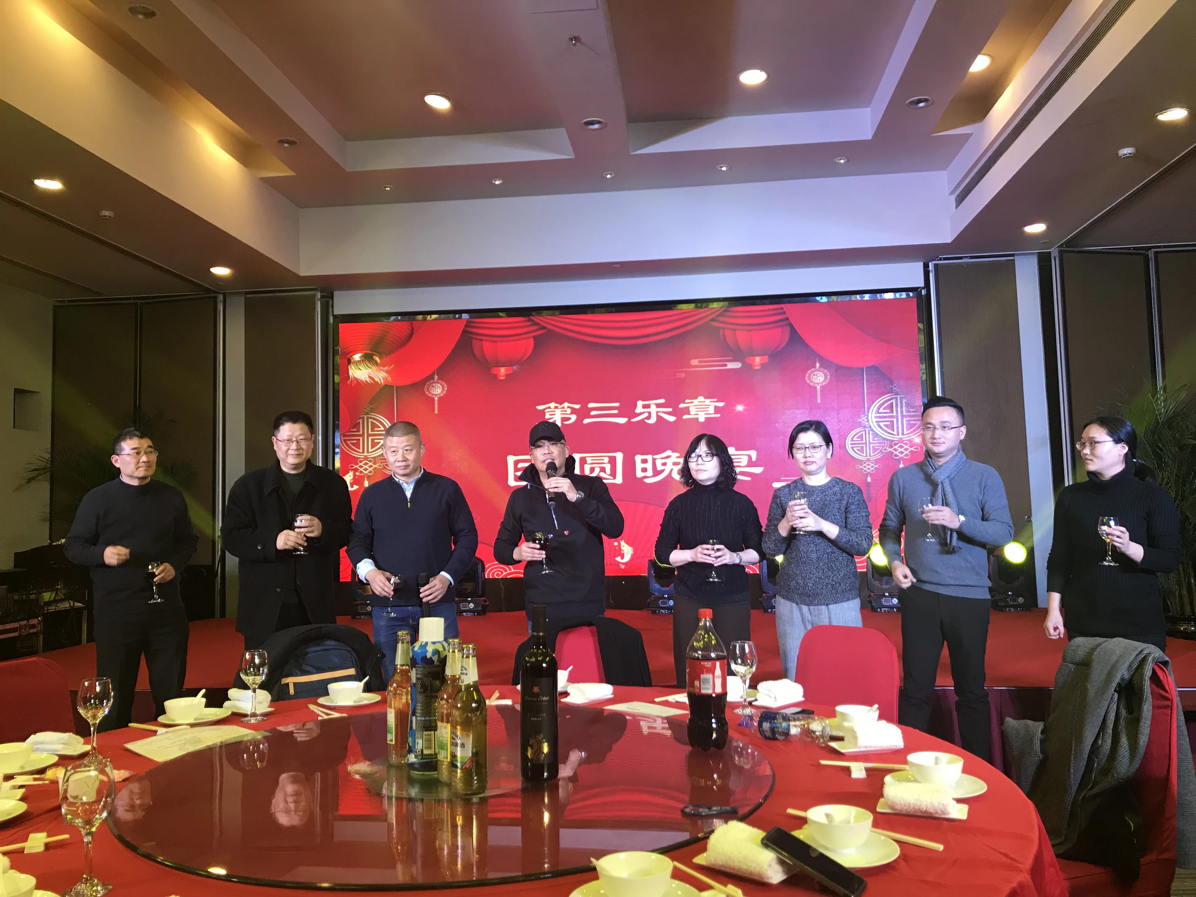 年会第三乐章-团员晚宴:大家共同举杯祝福公司的明天更加美好,晚宴的同时还进行了表演节目颁奖、个人才艺展示和小游戏。鸣泉科技一家人共同感受温馨氛围,共同期待公司在新的一年里向着更高的目标展翅翱翔。